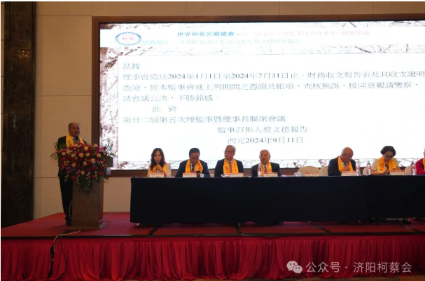 文献总会长并热切希望,今后不管由谁担任总会长,首先要把联络联谊宗亲情放在第一位,多与各地宗亲互动,多听取宗亲们的声音,加强团结,不断向上;其次要大力关心支持宗亲们的发展,鼓励他们大显身手,为当地及祖籍地的经济和社会发展做贡献,其三要始终把尊宗敬祖这项中华优秀传统美德传承下去,经常组织宗亲在祖籍地举办相应的活动,让宗亲们特别是年轻一代记住自己的来路,铭记宗功祖德,常怀感恩之心;其四会务工作能否有序开展,关系着我们这个宗亲组织的存亡,会址虽然设在台湾,但它是全世界柯蔡辛宗亲的共同组织,应该站在团结全世界柯蔡辛宗亲的高度上处理会务,而不是只站在个人的立场上考虑问题,以改革创新的思路进一步规范会务工作,明确位置,各司其职,各自扮演好自己的角色,不要越权越位,分工协作,规范运行,这样才能让世界各地的宗亲更愿意加入,才会更有活力,更有亲和力。并为实现祖国完全统一,为早日实现中华民族的伟大复兴做贡献。