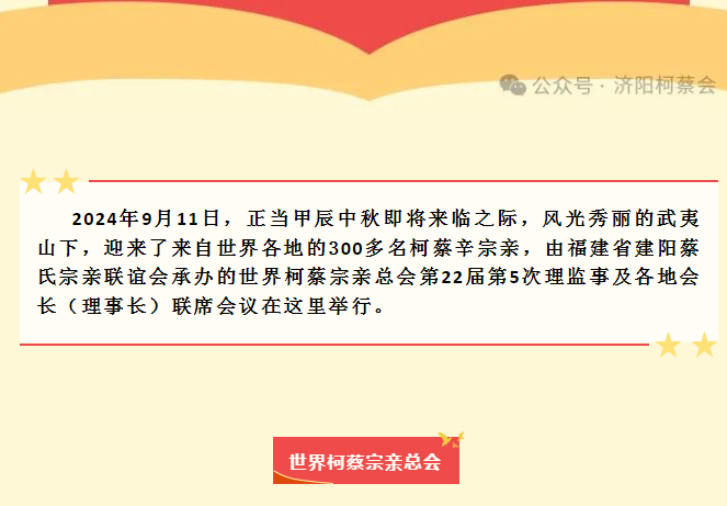 作者:济阳柯蔡会 蔡氏文化传播网转载 时间:2024-09-21 17:02:55 点击量:203