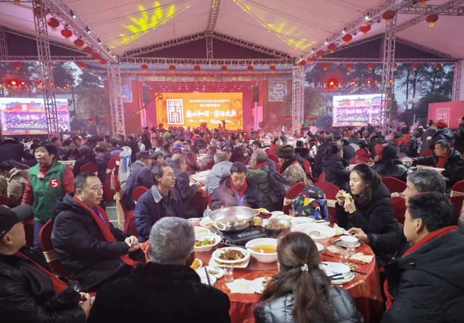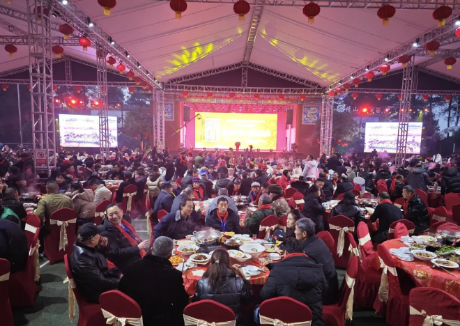 年会结束后,重庆市蔡⽒宗亲总会设下丰富的迎新午宴款待来⾃海内外的家⼈们。