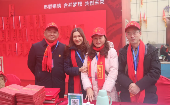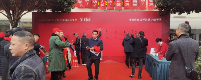 两总会领导在签名墙前与来⾃全国各地的家⼈们合影留念