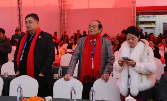 卓明主席、永廉主席在照普会⻓陪同下步⼊会场 。
