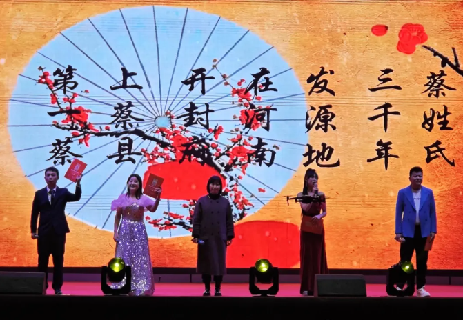 由重庆诗词学会副会⻓、永川作协主席、重庆市蔡⽒宗亲总会⽂化研究会会⻓蔡有林宗贤创作并领衔朗诵的⻓诗《我从上蔡⾛ 来》,拉开了迎新年会文艺晚会的序幕。
