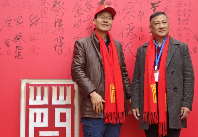 卓明主席将“天下⼀蔡”匾额交到照普会⻓和家泽执⾏会⻓⼿中