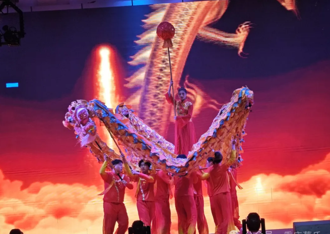在甲⾠⻰年即将到来之际,18⽶⻓的⼀条巨⻰在重庆蔡⽒宗亲总会年会舞台上舞动,时⽽腾空⽽起,时⽽昂⾸云端。兆示着我流淌着皇族⾎脉的⼗⼋万重庆蔡⽒宗亲在新的⼀年⾥定将乘势⽽起、 前途⽆量!特别感谢蔡志、蔡⽅春两位宗贤赞助的这个优质、霸⽓、震撼 的节⽬!