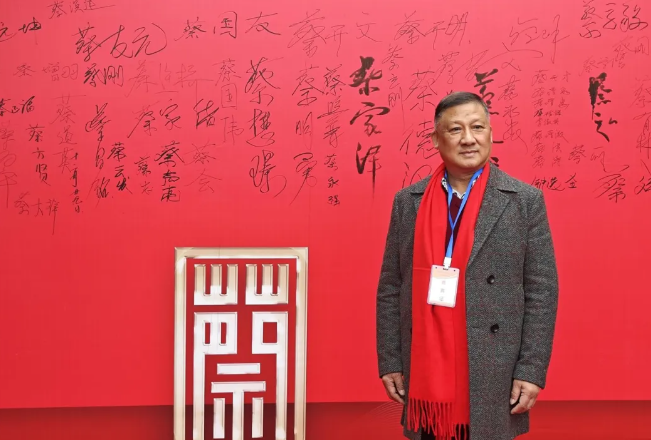 重庆市蔡⽒宗亲总会蔡家泽执⾏会⻓在签名墙上签名留念。