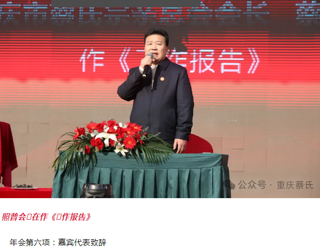年会进⾏第八项:重庆市蔡⽒宗亲总会⽂化经济研究会蔡有林会⻓讲话