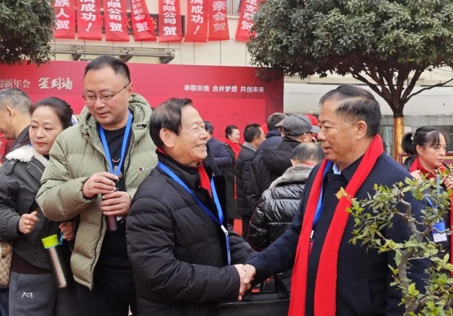 报到现场,⼈头攒动,家泽执⾏会⻓亲⾃接待,与来宾们亲切握⼿,互问短⻓