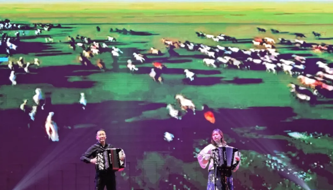 多才多艺的重庆蔡氏家人在舞台上尽情展现手风琴演奏、独唱等才艺。