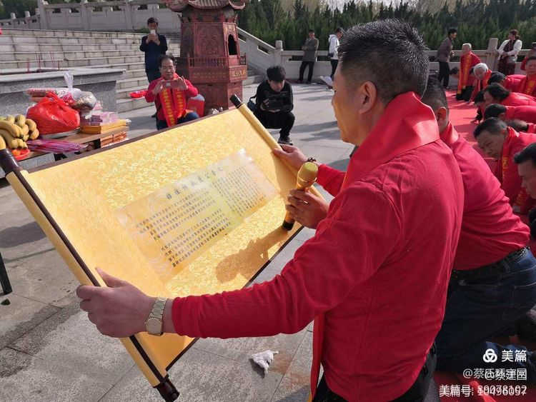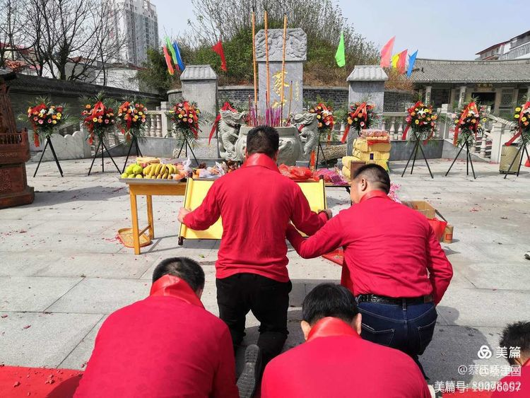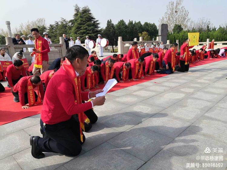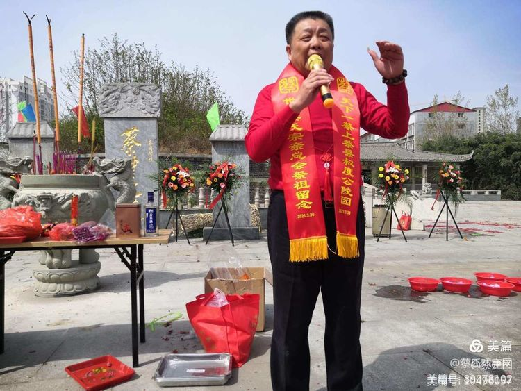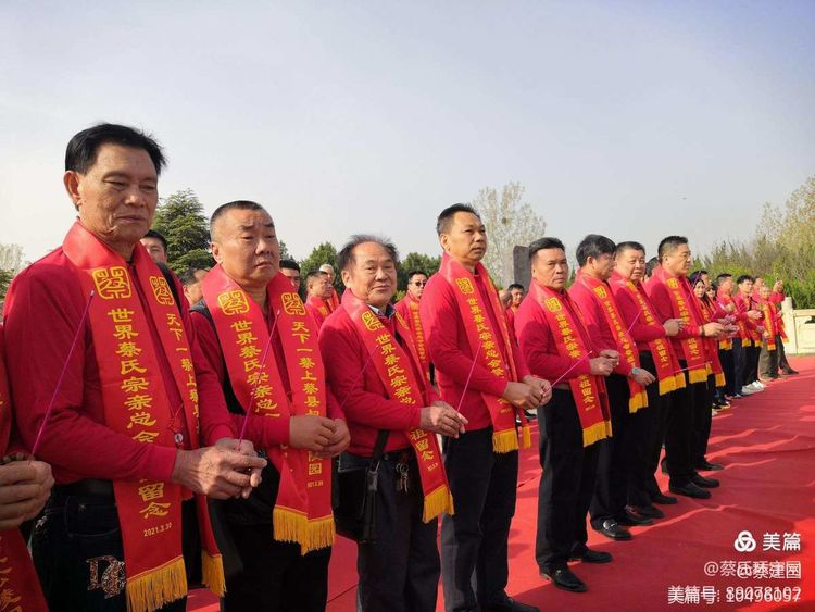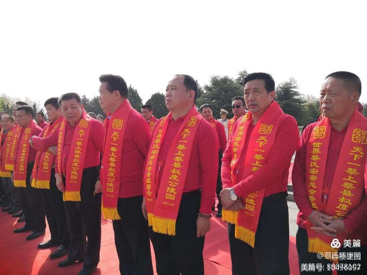 春回上蔡,慎终追远,源远流长,受新冠疫情的影响,在世界蔡氏宗亲总会主席蔡卓明(泰国华侨)的指示下,并由世界蔡氏宗亲总会执行主席蔡松潮率领世界各地的蔡氏裔孙以代表的形式来到古蔡国今河南省上蔡县举行祭祖大典。辛丑年二月十八,吉日吉时,各地蔡氏裔孙代表按流程向始祖叔度蔡公,二世祖仲蔡公祭拜,大会司仪宣布大典注意事项,静默三分钟,燃放鞭炮,奏乐,净手整衣冠,上祭品,上香,跪拜,宣读祭文,献花篮,添新土,逆时针环绕撒五谷。