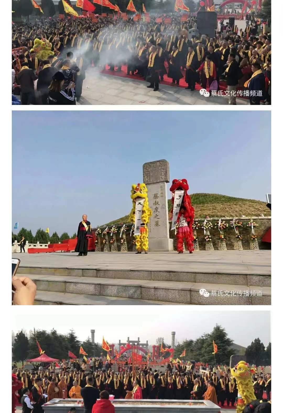 2018年3月29日,天朗气清,惠风和畅,在传统节日清明节即将到来之际,远至泰国、西班牙、菲律宾等国及国内湖南、福建、广东、湖北、贵州、江苏、江西等20多个省市的1600多名蔡氏宗亲齐聚上蔡,分别在蔡氏始祖叔度公陵园和二世祖蔡仲陵园隆重举行2018年清明祭祖大典。今年由江苏省蔡氏文化研究总会主办,仪式在庄严、隆重、古典、气派,并具有现代化元素的程序中缓缓进行。
