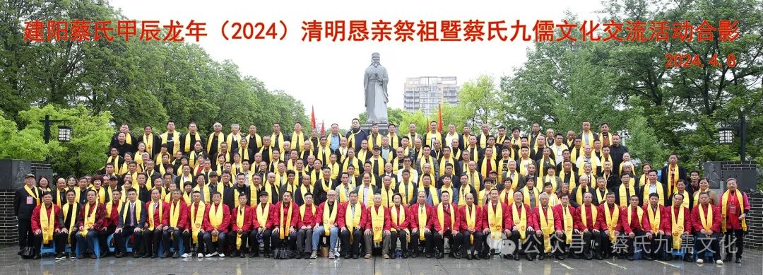 风清雨润,家国清明,慎终追远,缅怀先人,传承好家风,厚植家国情。4月8日,建阳蔡氏宗亲联谊会、建阳蔡氏九儒学术研究会举行甲辰年(2024)清明祭祖典礼。来自浙江、安徽、江西、广东的宗亲代表,以及我省福州、泉州、厦门、漳州、三明的宗亲代表,和我市建阳、建瓯、武夷山、松溪、光泽、浦城的宗亲代表等约300人,参加了祭祖典礼。