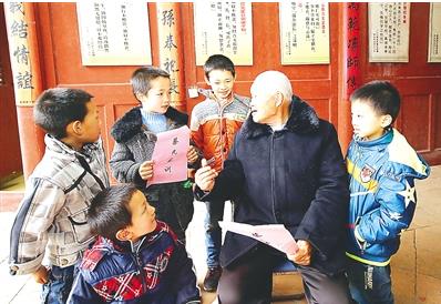 2016年4月6日,福建省平南市建阳区麻沙镇水南村蔡氏后裔蔡永发给孩子们讲解蔡氏家训家风。建阳区依托当地丰富的历史文化遗存,汲取具有地域特色的家风家训家规文化,组织开展多层面、多形式的家风家训家规宣传活动,将诚信、修身、崇学、向善、守诺等融入其中,让广大青少年接受中华民族家庭美德的洗礼。 (邱汝泉 李祥娇 摄)