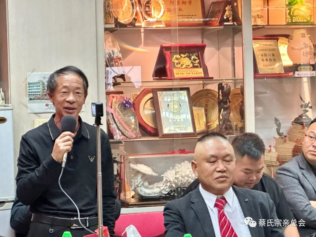 随后世界蔡氏宗亲总会执行主席蔡进、世界蔡氏宗亲总会监事长蔡木清、世界蔡氏宗亲总会常务副主席蔡建新、世界蔡氏宗亲总会执行监事长蔡荣归、世界蔡氏宗亲总会常务副主席蔡建国、世界蔡氏宗亲总会常务副主席蔡兴华、世界蔡氏宗亲总会秘书长蔡道济等宗亲都发表了发言和致辞。