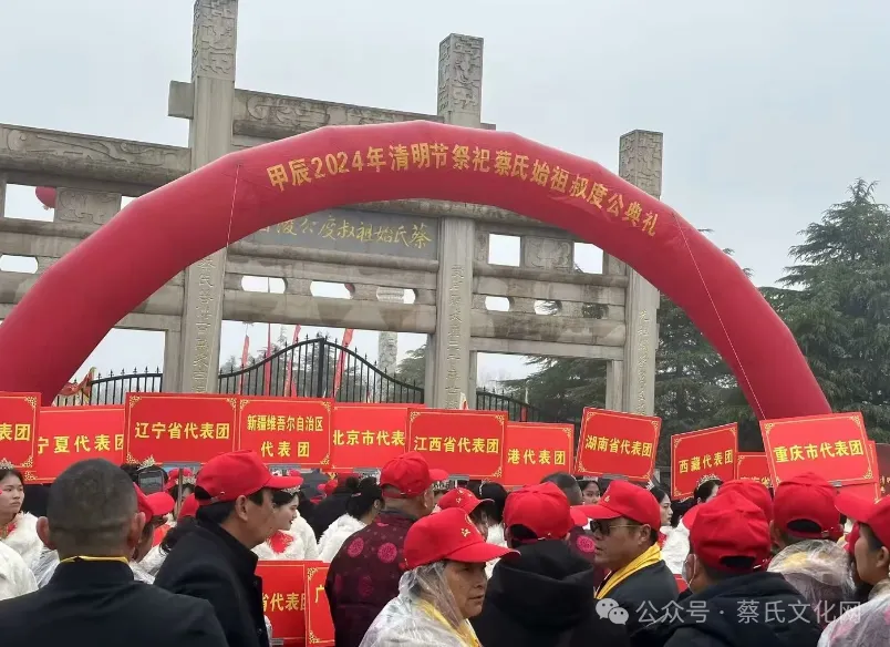 2024年3月24日,世界蔡氏清明祭祖大典在河南上蔡县叔度公陵园隆重举办。来自全球各地的100多个宗亲组织,2000余名蔡氏宗亲代表齐聚魂牵梦系的叔度公陵园,共同拜谒蔡氏始祖叔度公,传承崇宗敬祖、追本溯源的传统美德。