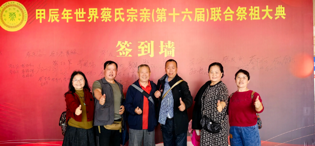 到时将有来自广东、江苏、江西、四川、浙江、福建、天津、北京、上海、湖南、湖北、河南、河北、贵州,广西,新疆,吉林,香港、台湾等国内及泰国、菲律宾、马来西亚、新加坡等海内外宗亲2000多名蔡氏裔孙,怀着对始祖的无限崇敬和寻根溯源、光大祖德的愿望,前来参加甲辰龙年清明祭祀始祖大典,同祈祖德庇荫,国泰民安,家国兴旺,国富民强,家族子孙昌隆,人财兴旺,共享幸福中国梦!