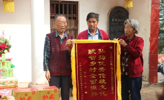 ▲河南省姓氏文化研究会阮姓委员会首席顾问韩丙寅先生、阮秀荣女士向文化节管委会赠送锦旗