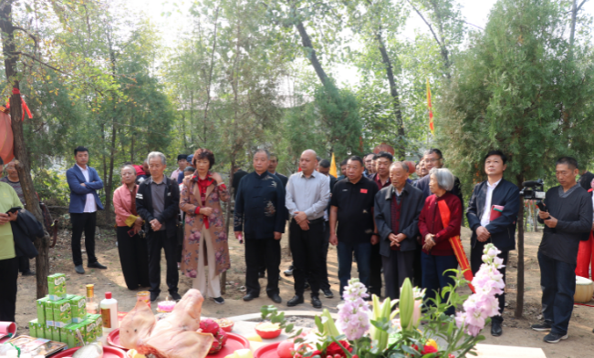 前贤留胜迹,我辈复登临。学会骨干在尉氏县地方史志学会会长朱大宽、学会支部书记李建强带领下,登上位于君李村的君子山顶。君子山巅,松柏长青,蔡公祠前,群贤肃立。上午九时,君子山登高暨第三届蔡邕文化节在欢快的锣鼓声中正式开始。