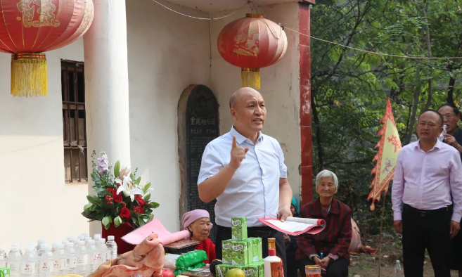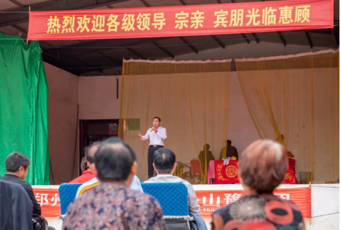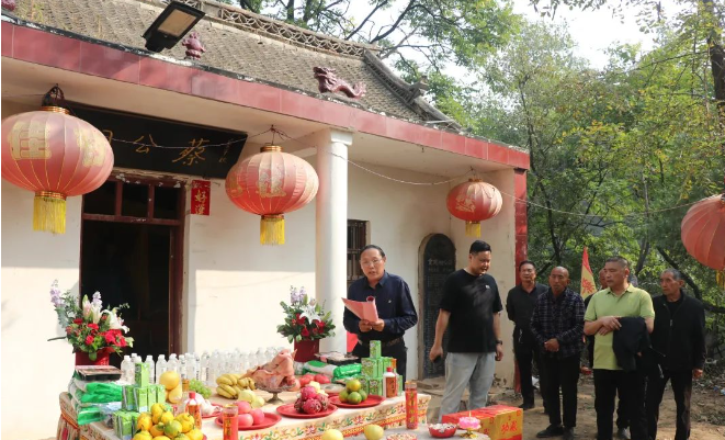 朱会长在致辞中高度颂扬了东汉名贤、一代大儒蔡邕在文学、书法、音律等古典文化的卓越贡献,并且指出君子山阮瑀祖道处的发现是我县文史研究的一项重要成果,它为考证蔡邕故里提供了重要的历史地理依据,也为大营镇增添了一处历史厚重的文化旅游资源。弘扬蔡邕文化,服务家乡建设,朱大宽表示,尉氏县地方史志学会的专家老师将一如既往支持和维护两地文化寻亲联谊活动,为蔡庄村和君李村两地的蔡邕祭祀活动贡献智慧和力量。