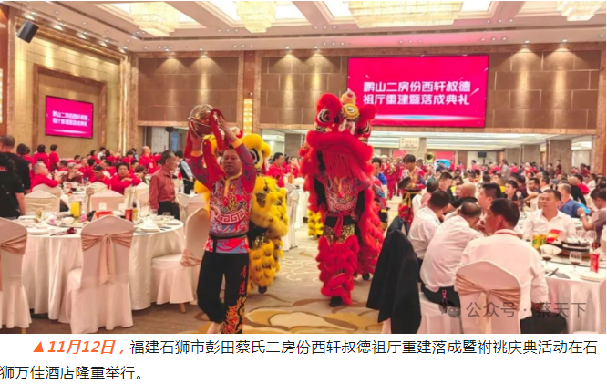 ▲11月4日,福建省晋江永和塘锦头村顶三房祖厅举行隆重的重建落成仪典。