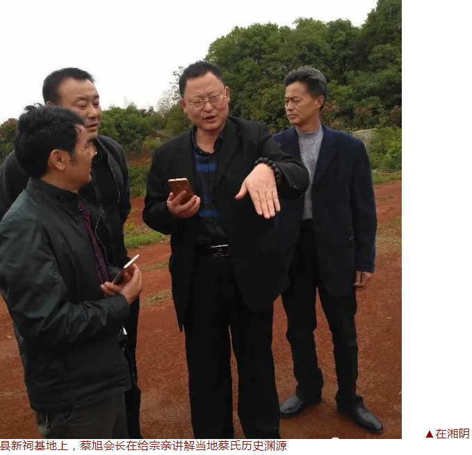湖北蔡氏洛阳堂宗亲理事会受湘阴县蔡旭会长的邀请,在蔡历刚会长、蔡光利执行会长的安排下,由常务副会长蔡汉光带队,随行人员有蔡宝瑶、蔡显林、蔡子香、蔡子龙一行五人,于今年四月十七日走访了湘阴县石塘镇蔡氏本家。宗人的热情接待,使我们体验到了血浓于水的真实情感。这种亲情会形成一种精神力量,激励宗人,团结协作,拼搏进取。