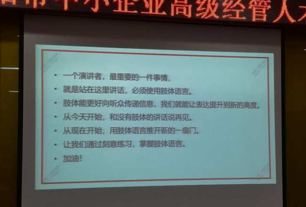 17-18日,华为3G/4G全球路演策划人、上海交大商业演讲研习社创始人刘澈教授在湖南大学为企业家学员们作了《领袖魅力商业演讲与影响力塑造》主题授课,课程通过系统分析讲解、现场分组实战演练等模式,有效帮助学员提升商务演示与演讲能力。