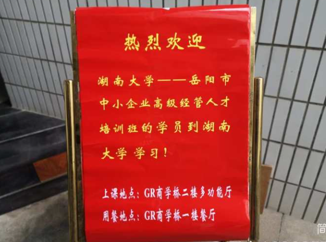 4、横幅两副(标语:湖南大学.岳阳市中小企业高级经管人才培训班“金秋十月、走进湖大”游学活动;湖南大学.岳阳市中小企业高级经管人才培训班“走进远大科技集团”标杆研学);