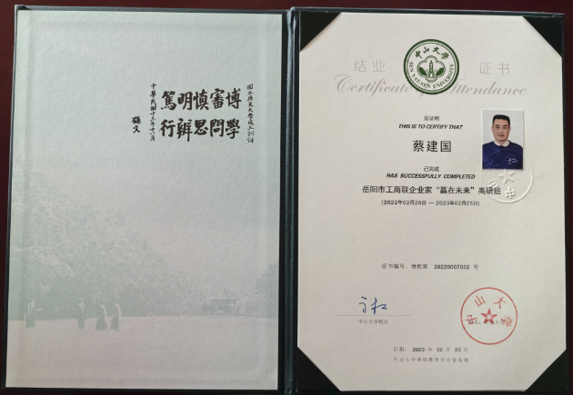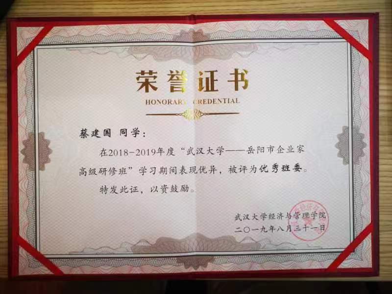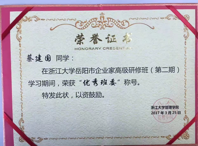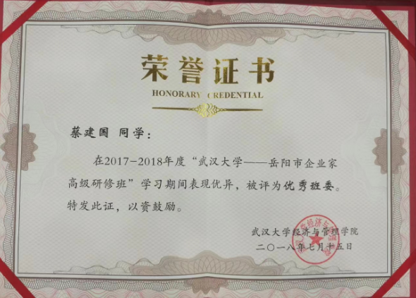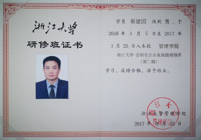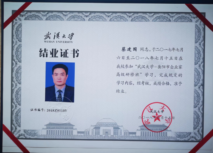 董事长蔡建国为学习借鉴其他单位经验,到目前为止已自费七届参加各大名校企业家高级研修班,(浙江大学第二期,武汉大学一期,武汉大学第二期,湖南大学,广东财经大学,中山大学,清华大学)为推动企业发展提供不竭动力!公司自创立以来,在省、市领导的正确指引和全体员工的不懈努力下迅速发展,规模壮大,现已成为服务城市发展、维护人民生命财产安全中不可或缺的中坚力量!