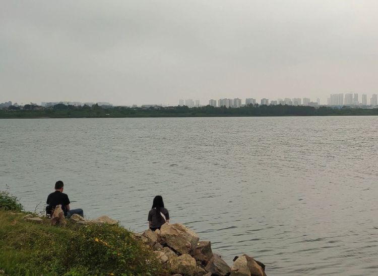 冬沐斜阳堤岸坐,偷闲茗饮听流淙。