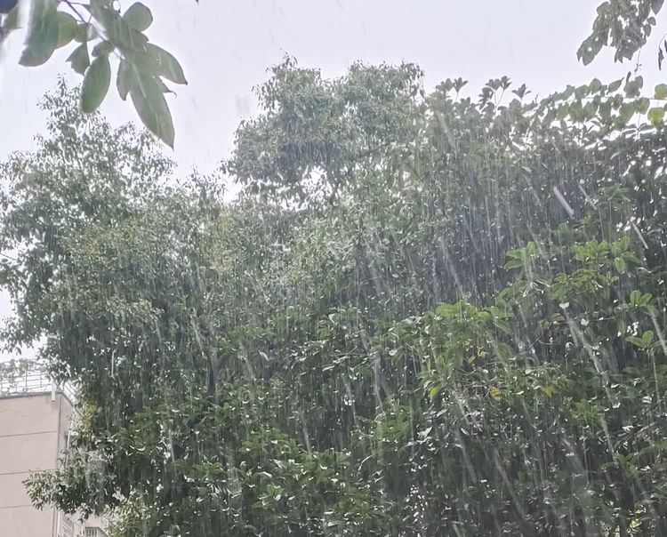 窗边飞雨打残叶,庭院风凉无雀踪。