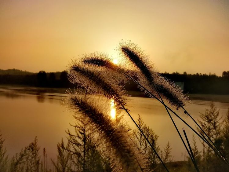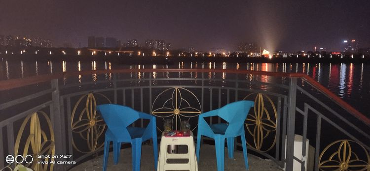 暮霞映照万楼秋,茗饮江边欲解愁。