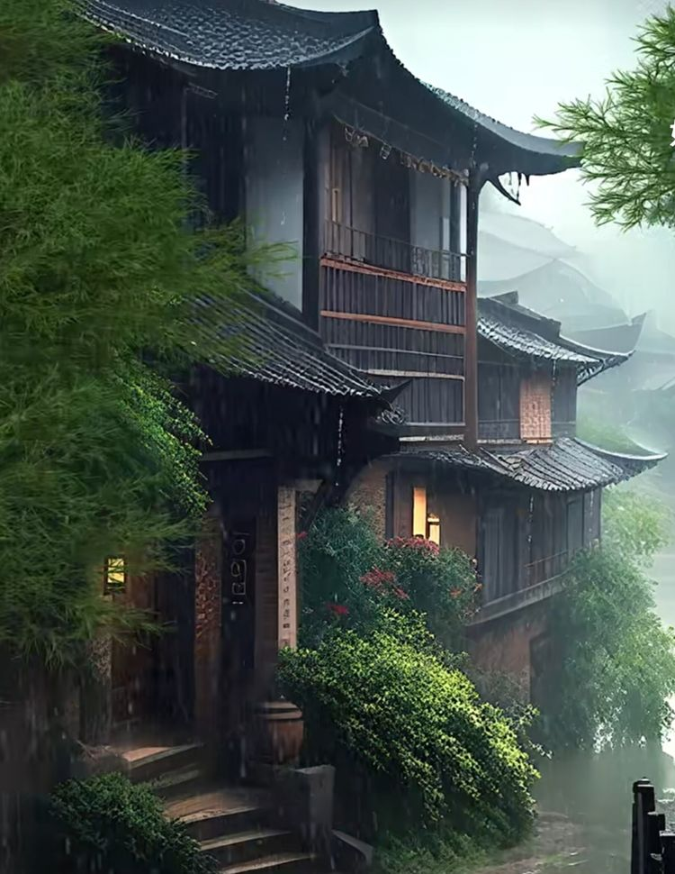 亭前茗饮一江月,夜下蝉鸣千树间。