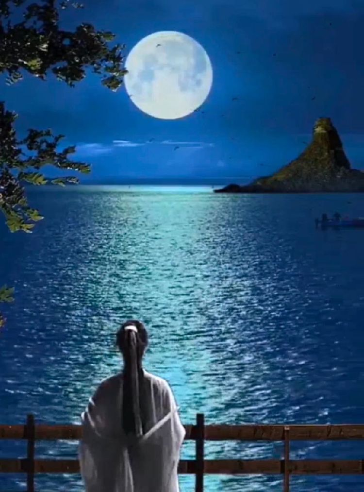 秋夜画屏开。倚槛凉风拂面来。远目遥遥天上月,邀饮阳台。茗饮阳台。