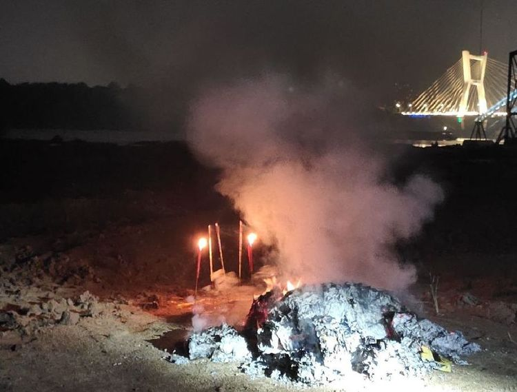 悲秋祭祀暮江边,烛照清宵奉纸钱。