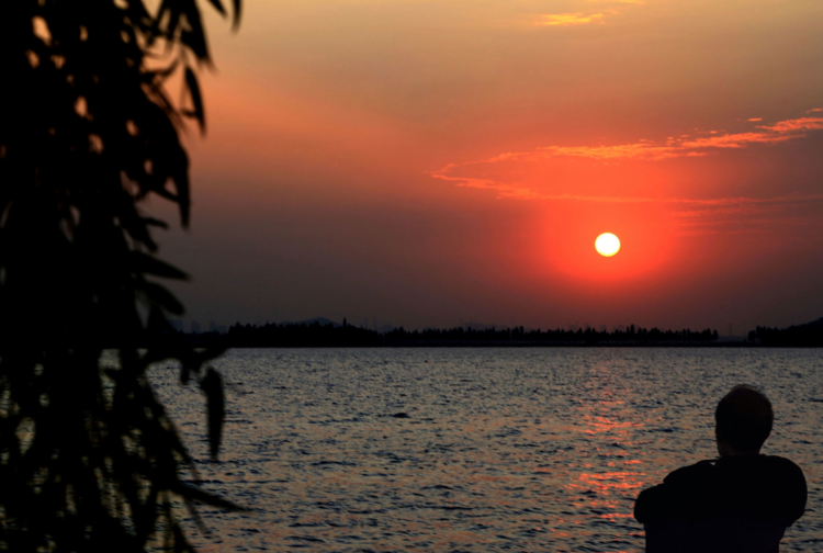 遥观湘水映霞红。欲接天边飞鸟翅,惬意。于焉贪恋抱苍穹。