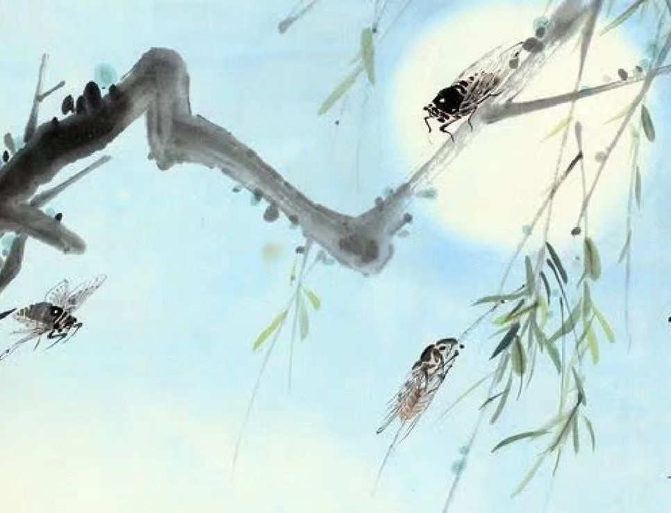 茗饮江干欲解愁,金蝉鸣柳自优悠。
